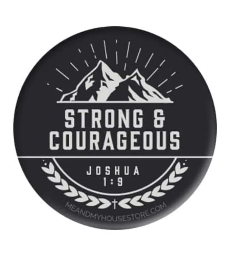 Fint badge med et godt budskab. Badgen minder om, at vi kan være stærke og modige fordi Gud er med os – det er en god reminder at bære med sig på skoletasken eller trøjen.