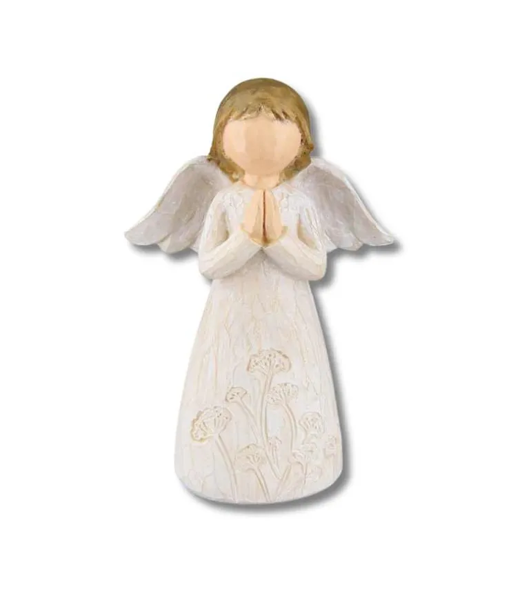 Lille smuk figur af en engel med bedende hænder, med motiv af blomster på sin kjole.