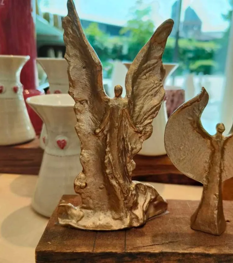 Andrea Zrenner, der er skulptøren bag, har kaldt den Kraftens Engel. Den udtrykker den magt, som Guds engle har. Og de passer på os i en åndelig kamp.