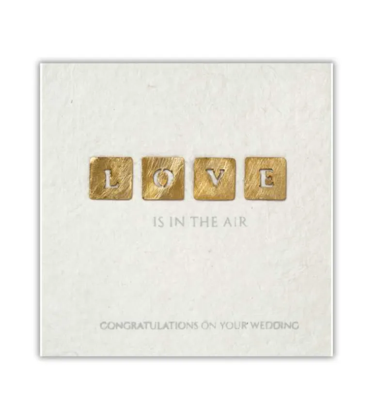 Teksten uden på kortet er: LOVE is in the air.