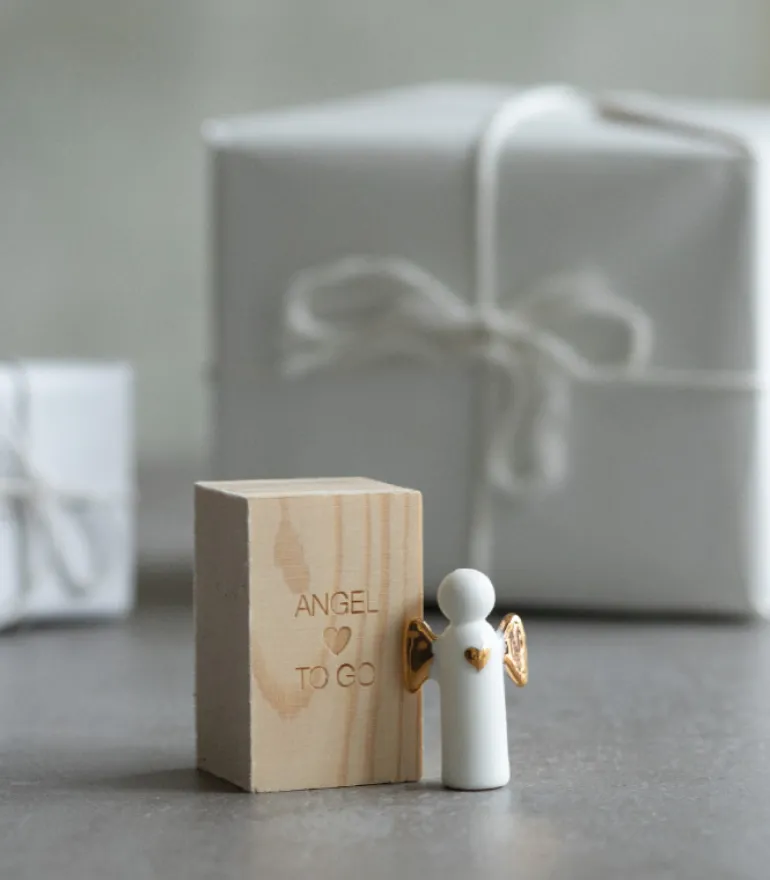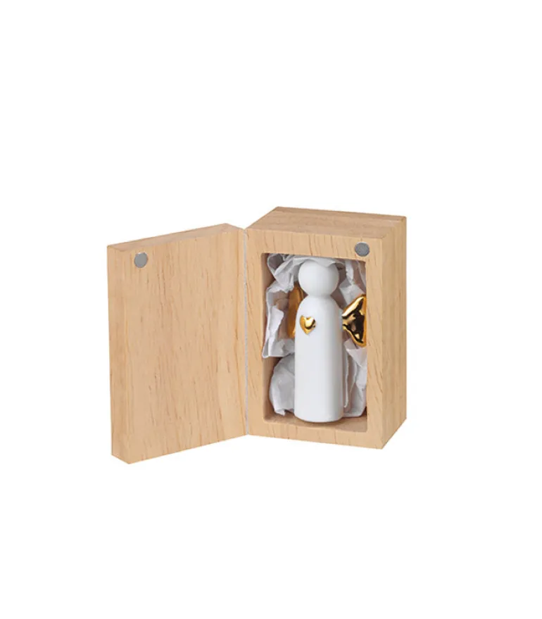Mål: æske: 3,5 x 5,5 cm, Engel: 3,5 – 4 cm