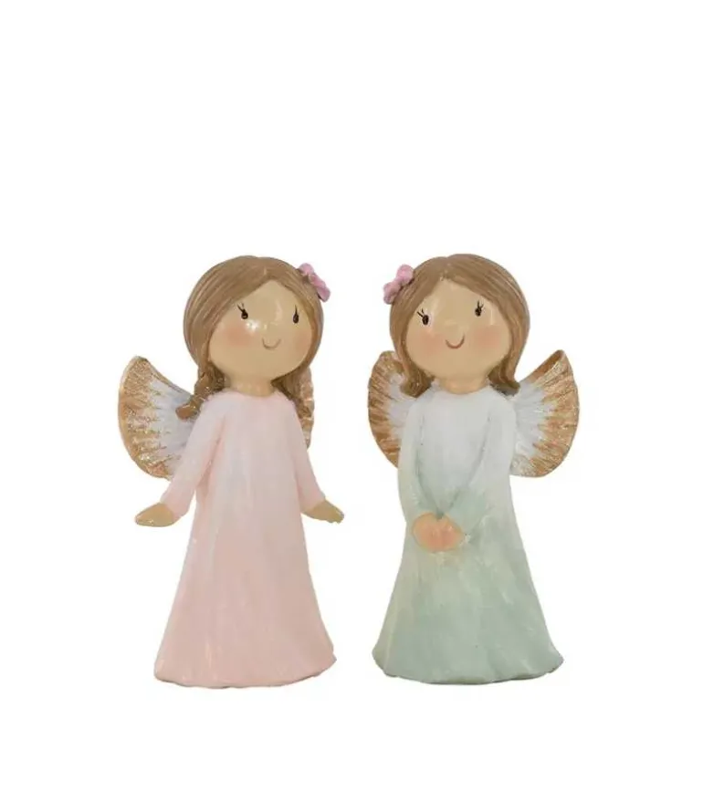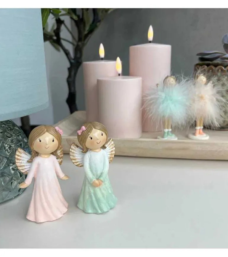 Sød lille Englepige med en fin grøn kjole, fletninger og med fine guldvinger.