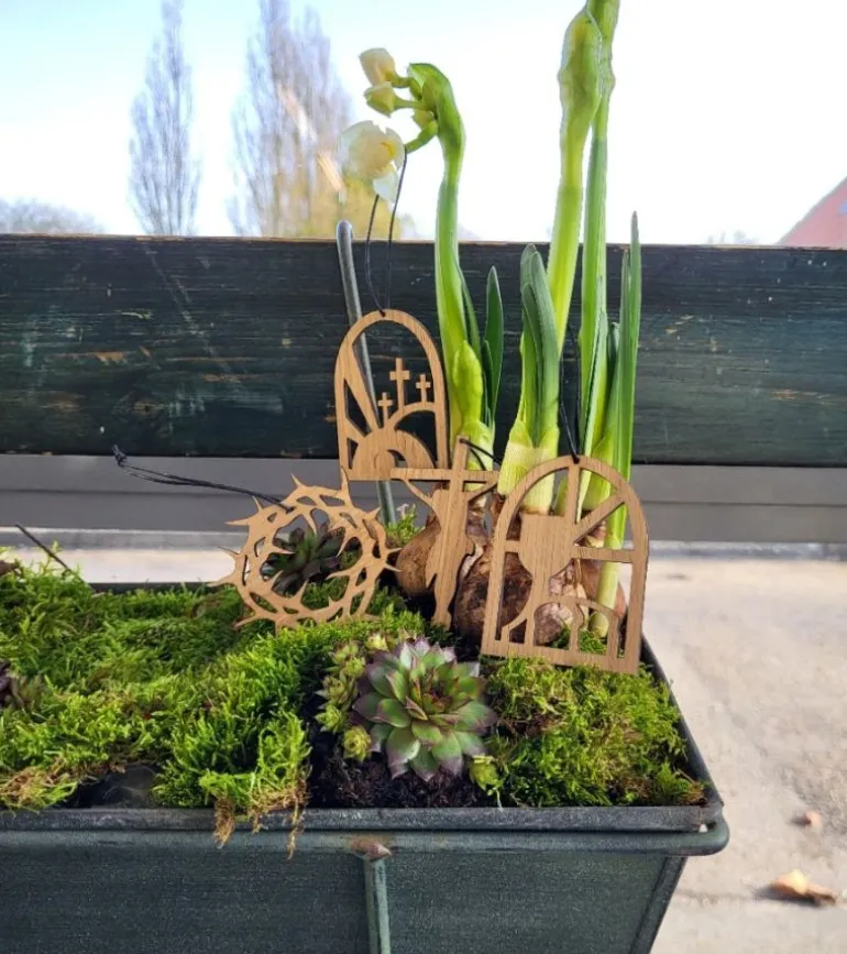 Denne due kan også bruges som en dåbshilsen fra kirken. Det er muligt at få indgraveret kirkens navn eller et dåbsord på dette ophæng. Hæng den i kirken hele året. Og når I holder dåbsgudstjeneste, er familierne inviteret til at komme og her kan de få deres helligåndsdue med hjem.
