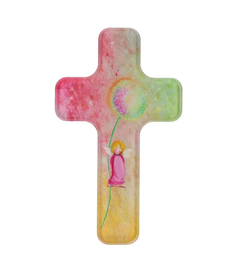Flot og farverig glas kors med symbol af en pige og mælkebøtte