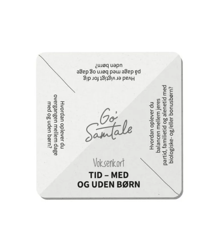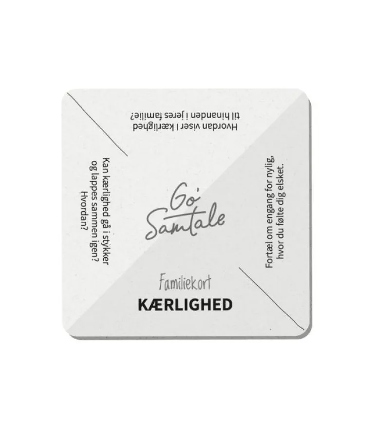 Æsken kan stå på bordet og har I tid til et kort, så trækker I et. På kortet er der et emne, og tre spørgsmål, der hjælper jer i gang med den gode samtale.
