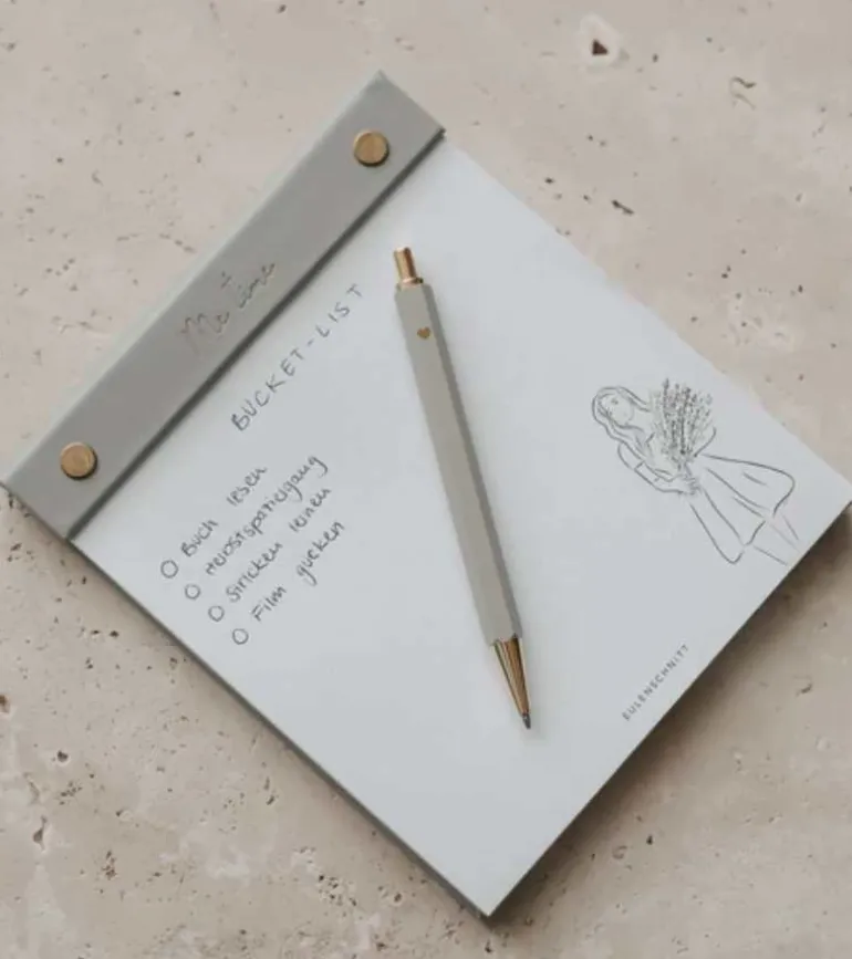 Fin og enkel grå kuglepen med et lille guld hjerte.