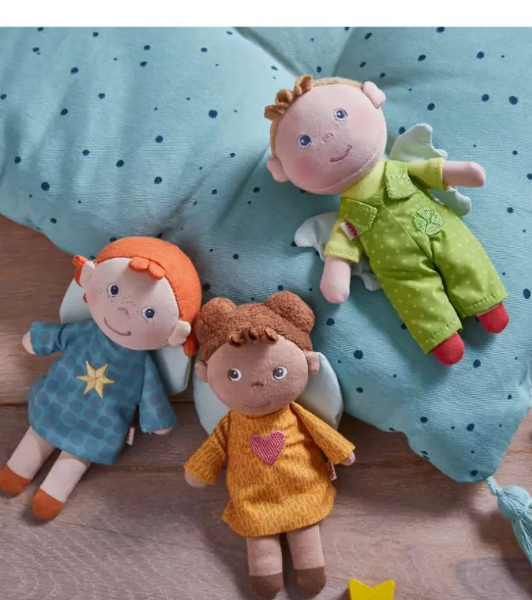 Fin engel dukke fra HABA. Han hedder Lunis, men vil gerne have et nyt navn. Han er en trofast lille ven til alle nyfødte og små børn.