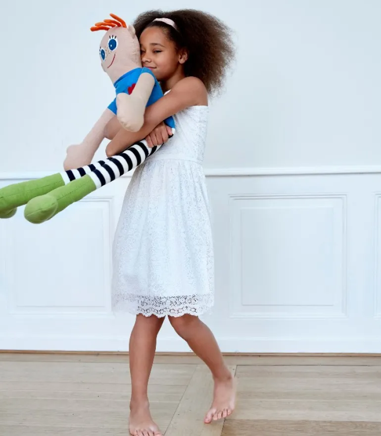 Min bedste ven hedder KAI. Denne dejlige KAI dukke er strikket i jacquardvævet bomuld og har fine håndbroderede detaljer.