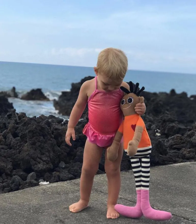KAI hjertet går igen på alle dukker, fordi kærlighed betyder meget for KAI. Børn bærer en stor plads i KAI´s hjerte.