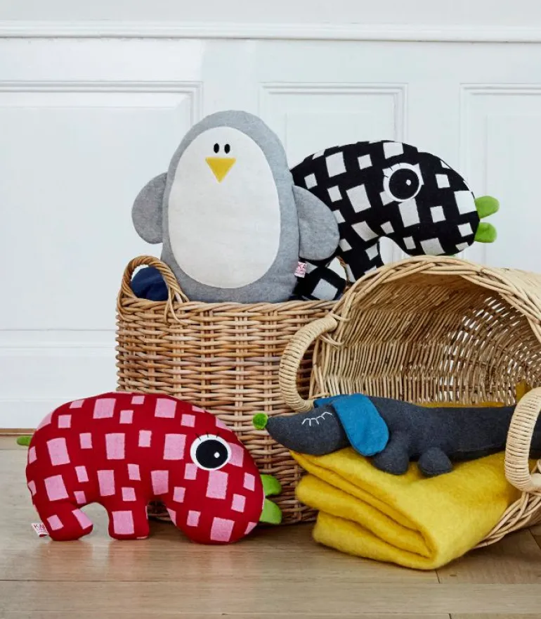 Den er lavet i jacquardvævet bomuld med håndbroderede detaljer, og fyldt med blødt fiberfyld.