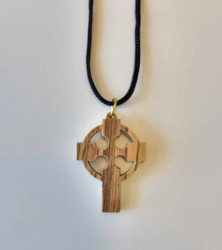 Keltisk kors i oliventræ. Cirklen i et keltisk korset symbolisere morgensolen på den nye jord.
