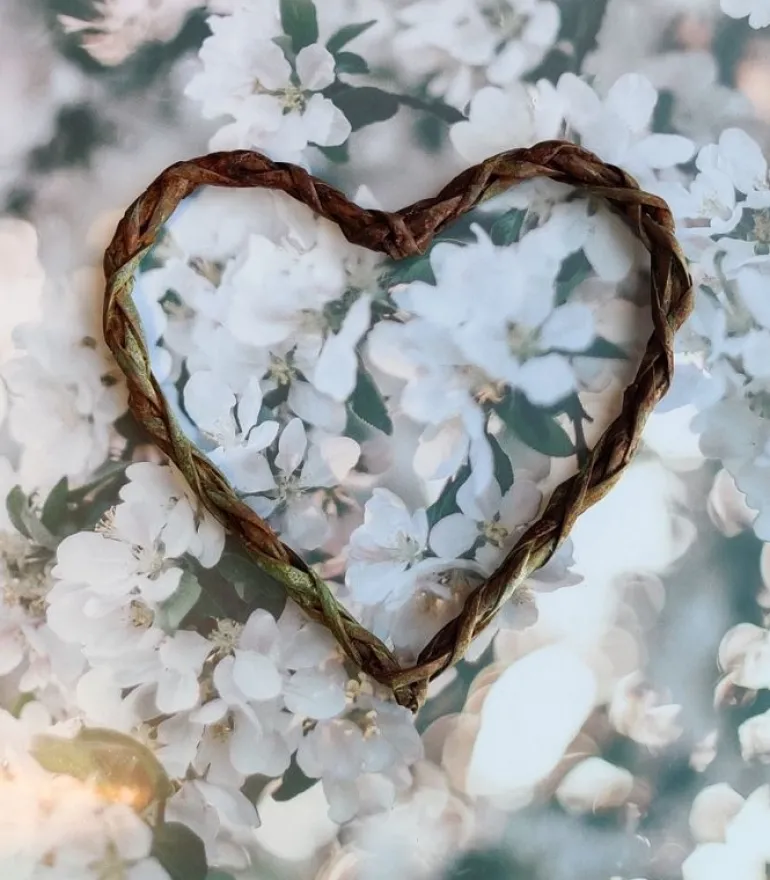 Meget smukt hjerte i flettet pil, der er dybbet i kobber. Hjertet kan lægges på graven, hvor det vil patinere yderligere og blive smukkere og smukkere, det kan også lægges udenfor i en have eller på en altan.