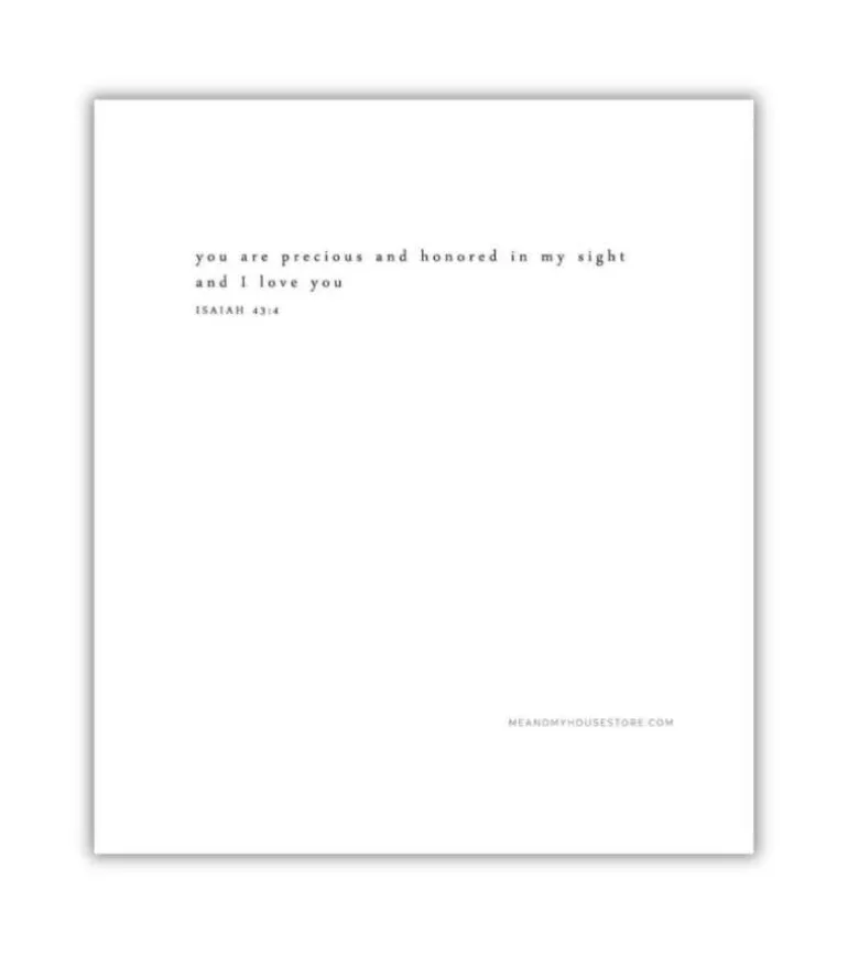 Esajas 43:4 For du er dyrebar i mine øjne, højt agtet, og jeg elsker dig.