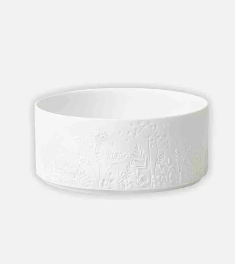 Vil du give en gave med lidt ekstra hjerte, så er denne skål, virkelig smuk. Den er fyldt med blomster og blade, der er støbt ind i porcelænet, der gør den virkelig smuk og noget helt særligt.