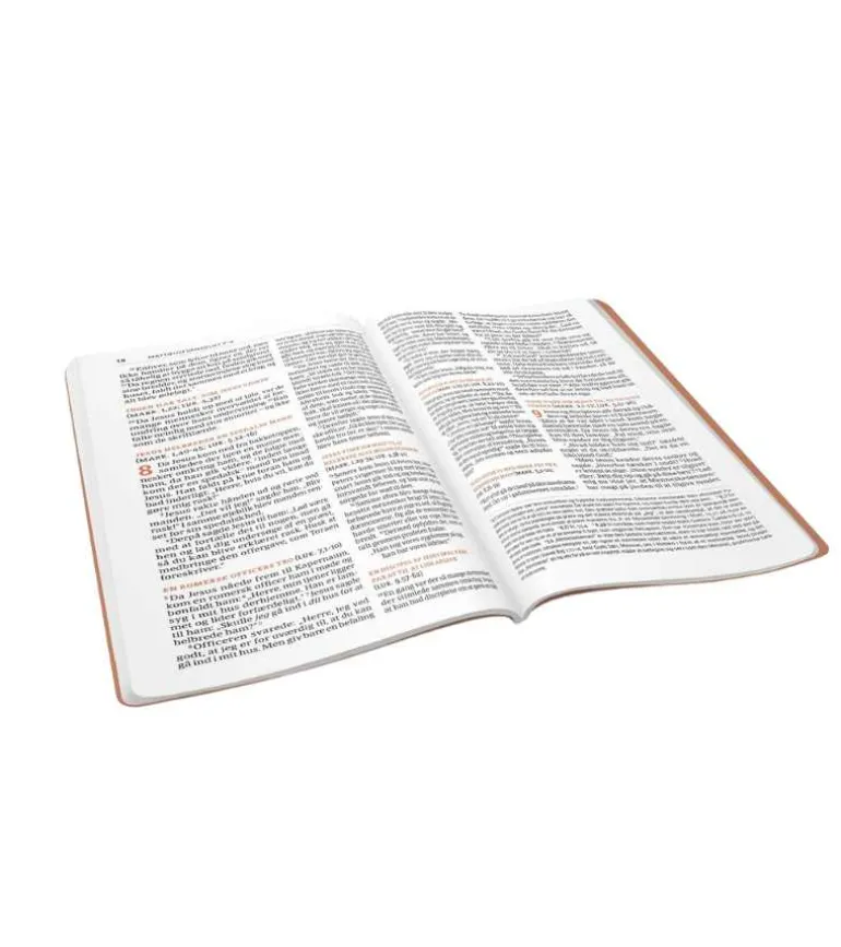 Designet er udformet med henblik på at optimere læsbarheden. Teksten er sat op i to spalter per side, hvilket gør tekstlinjerne kortere og nemmere at læse. Der bruges tre forskellige skrifttyper og to forskellige farver, som klart viser, hvad der er tekst, overskrifter og henvisninger.