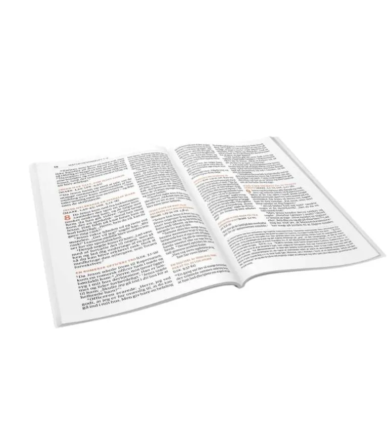 Designet er udformet med henblik på at optimere læsbarheden. Teksten er sat op i to spalter per side, hvilket gør tekstlinjerne kortere og nemmere at læse. Der bruges tre forskellige skrifttyper og to forskellige farver, som klart viser, hvad der er tekst, overskrifter og henvisninger.