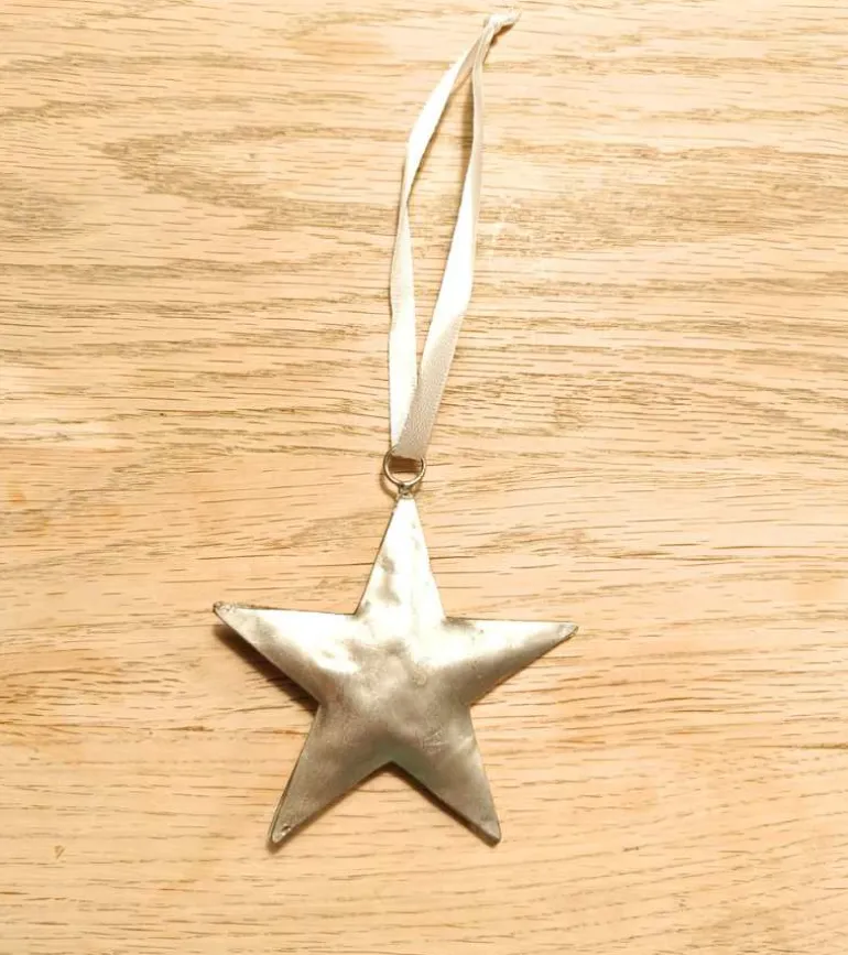 Simpel og pæn guld stjerne til ophæng, med unik hamret design.