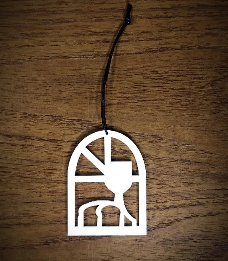 Ophænget er vores fortolkning af Skærtorsdag, hvor Jesus indstifter nadveren. Matt 26,26-29