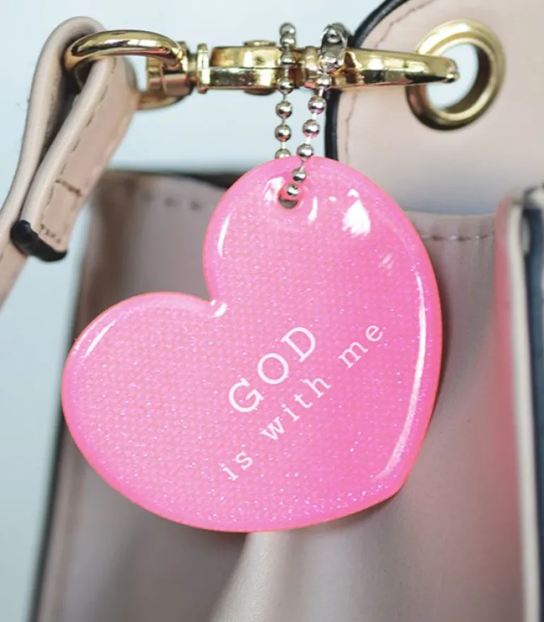 Fin pink hjerte med teksten God is with me! – Gud er med mig.