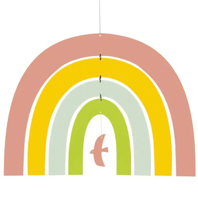 Inde i regnbuen hænger den fineste lille fredsdue, som symboliserer Guds fred og Helligånden.