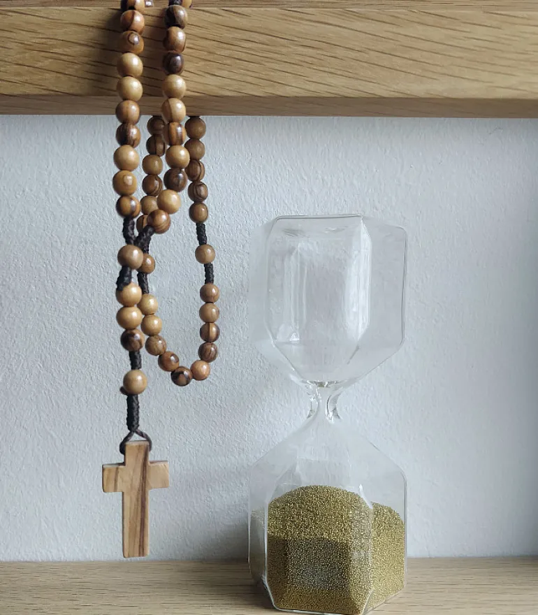 Katolikkerne bruger en rosenkrans i deres daglige bønner.