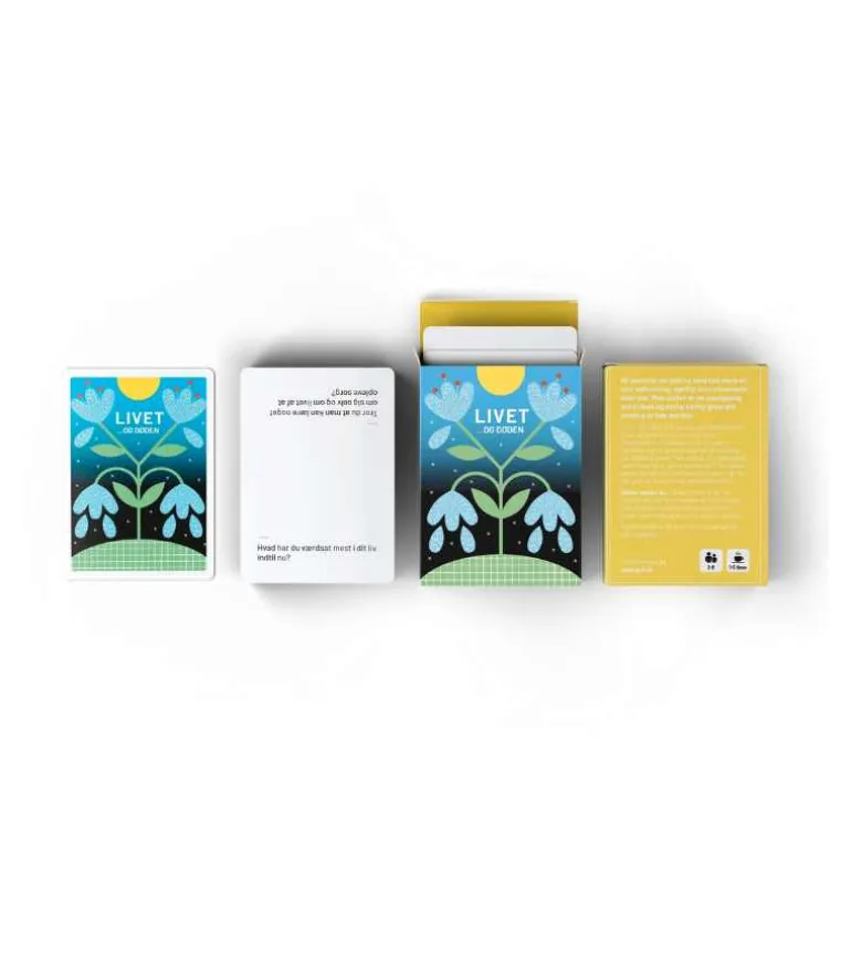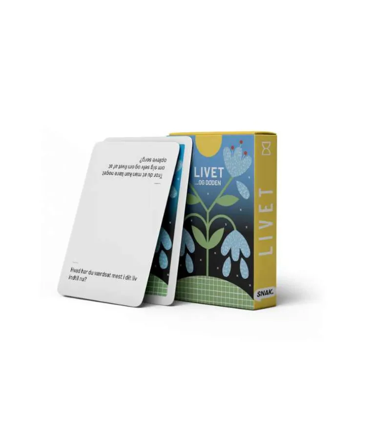 LIVET OG DØDEN er et sæt samtalekort som berør glæden og smerten ved livet. Spørgsmålene imødekommer de svære samtaler der er gode at tage for alle, særligt når døden kommer helt tæt på. Stil spørgsmål som: Hvad vil du gerne huskes for? Har døden været tæt på i dit liv? Hvilke relationer i dit liv har gjort at du er vokset som menneske?