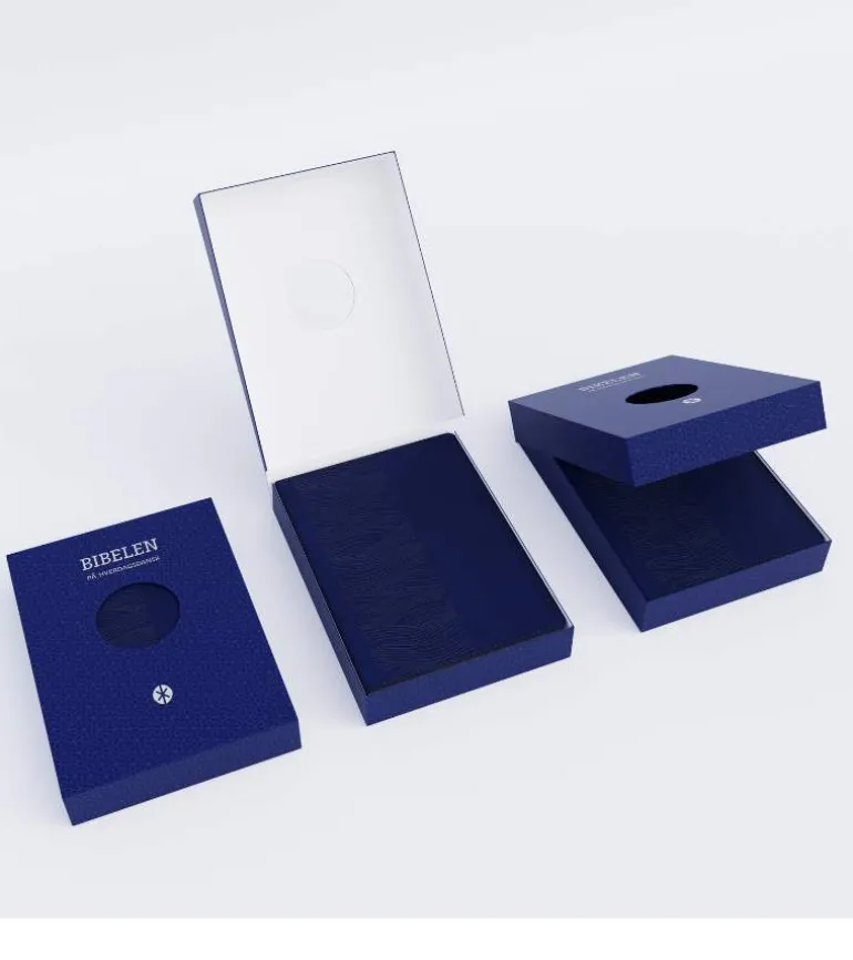 Kommer i en æske, der er beregnet til at passe på bibelen i forsendelsen og ved transport.