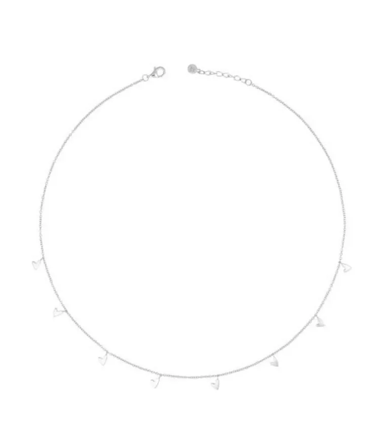 Fin, elegant og helt enkle halskæde med 8 små hjerte-charms.