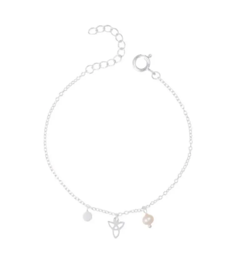 Skytsenglen beskytter, hjælper og er der altid. Sødt armbånd med et lille engle vedhæng og en lille ferskvandsperle.