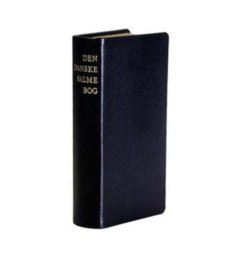 Den Danske Salmebog læderindbundet med guldsnit og guldpræg på forsiden og ryggen.
