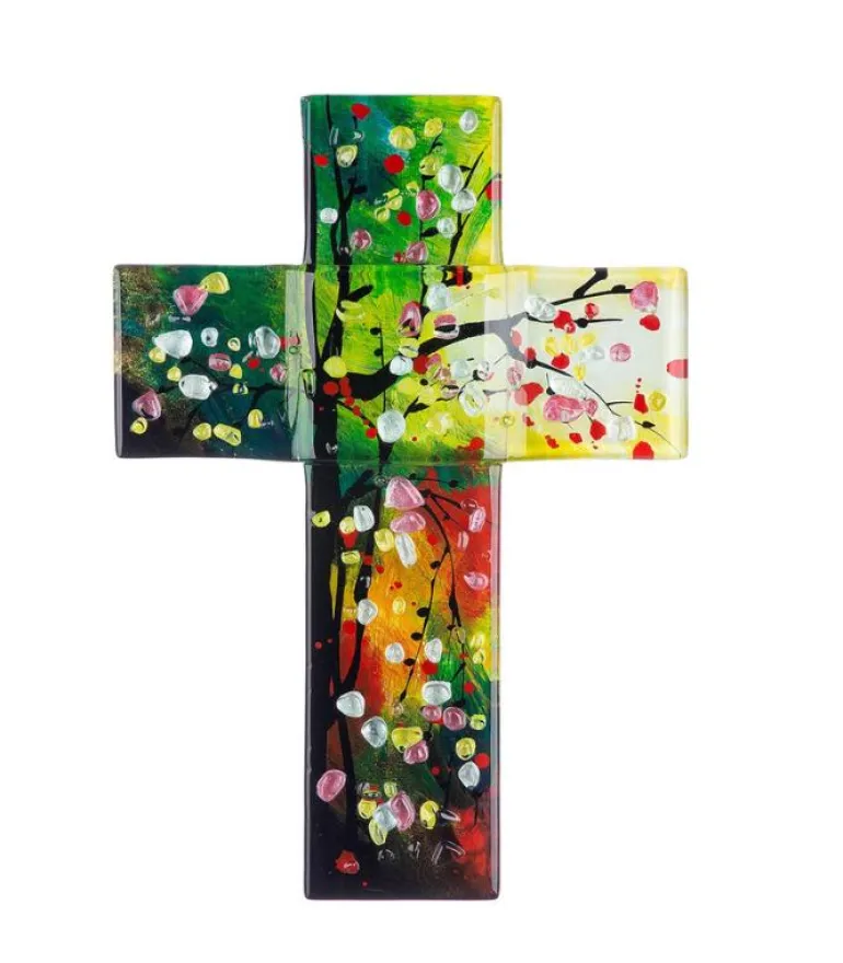 Smuk glaskors med mange skønne farver. Med et omrids af Livets træ med alle dets smukke blade.