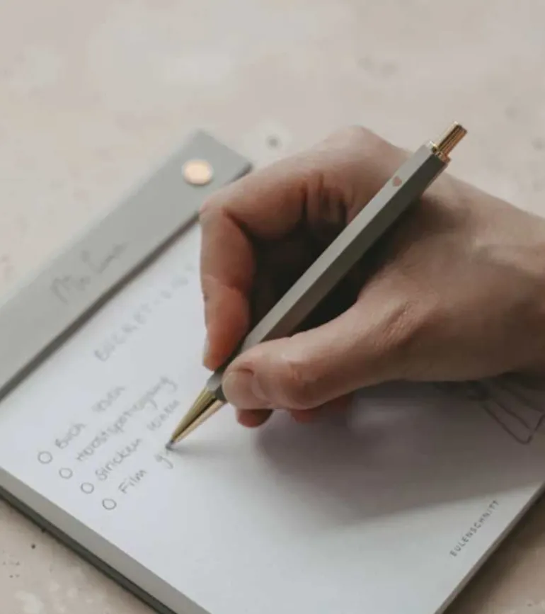 Fin og enkel grå kuglepen med et lille guld hjerte.