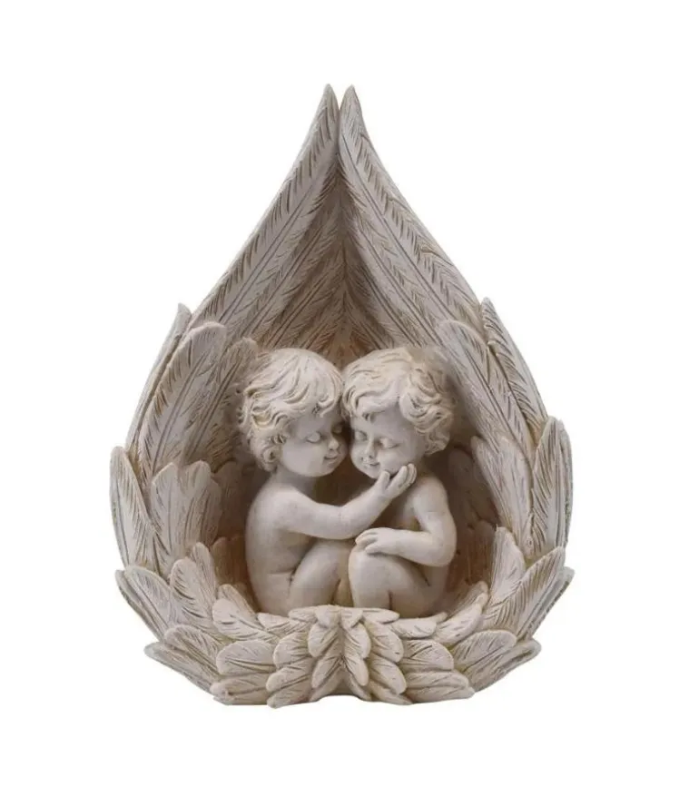 Denne figur forestiller to engle, der sidder i et par åbne hænder. Rigtig fin til kirkegården.