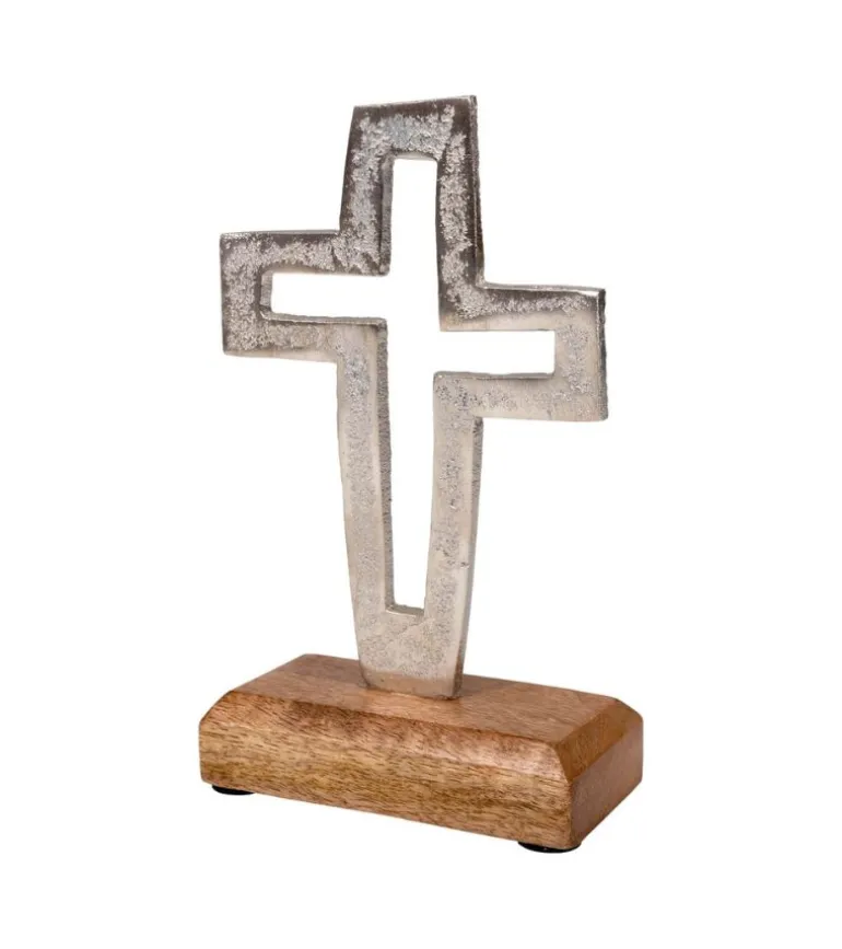 Et fint asymmetrisk kors på en træfod.