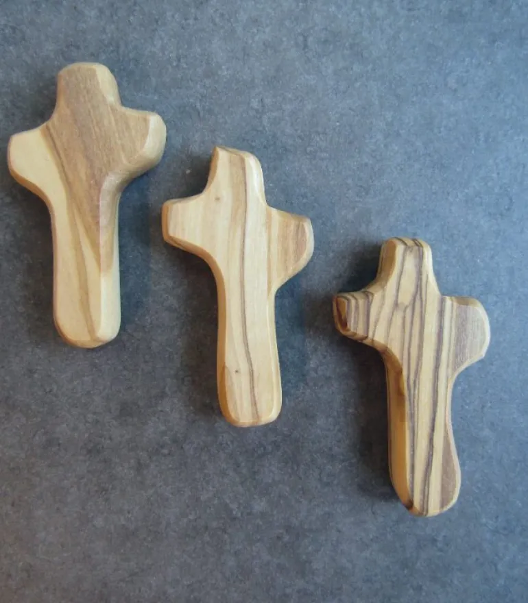 Smukt lille håndskåret lommekors i Oliventræ.