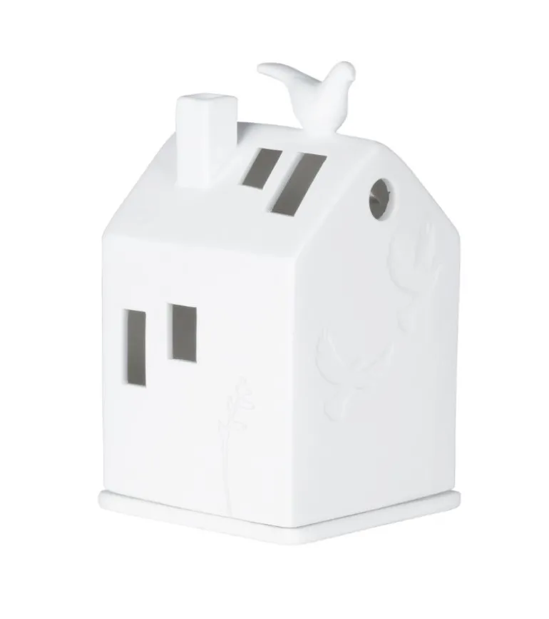 Fint lyshus med en fredsdue på taget. Eller en Helligåndsdue på taget.