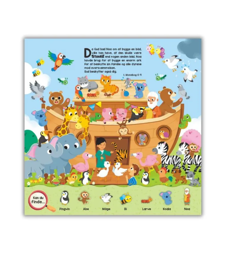 Min Større Søg og Find Bibel er velegnet til 3-5 årige børn og er en perfekt måde at underholde dit barn på en regnvejrsdag eller på en lang rejse.