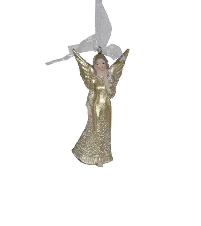 Englen er lavet i polyresin og håndmalet med fine detaljer.