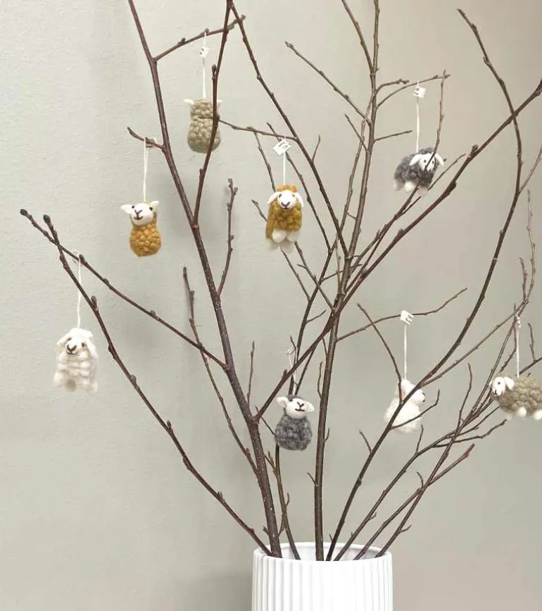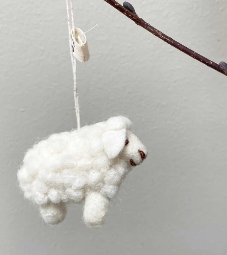 Den er håndlavet i filtet uld og kommer med en snor, så den kan hænge på en gren.