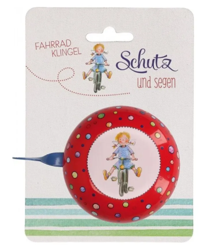 Lækker ringeklokke med et motiv af en cyklende engel-pige.