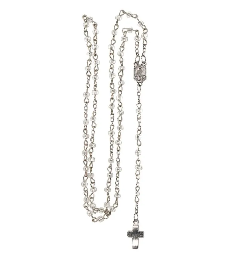Fin Rosenkrans med små transparente glasperler metalkors i bunden.