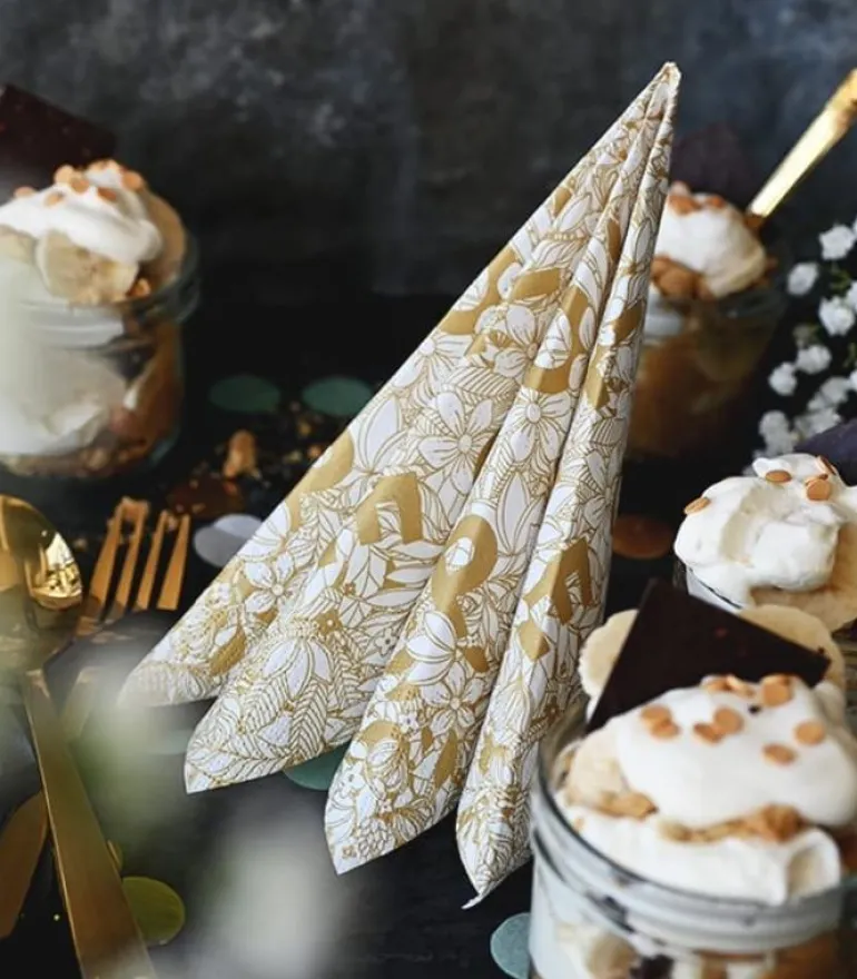 Pakken indeholder 20 stk frokostservetter i 33 x 33 cm (Foldet: 16.5 x 16.5 cm). 3-lags servietter.