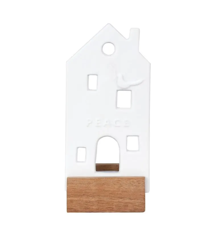 Et fint silhuet hus i porcelæn og med plads til et LED fyrfadslys på bagsiden.
