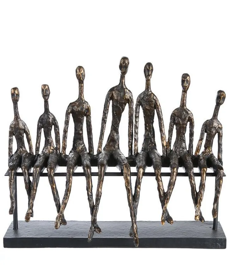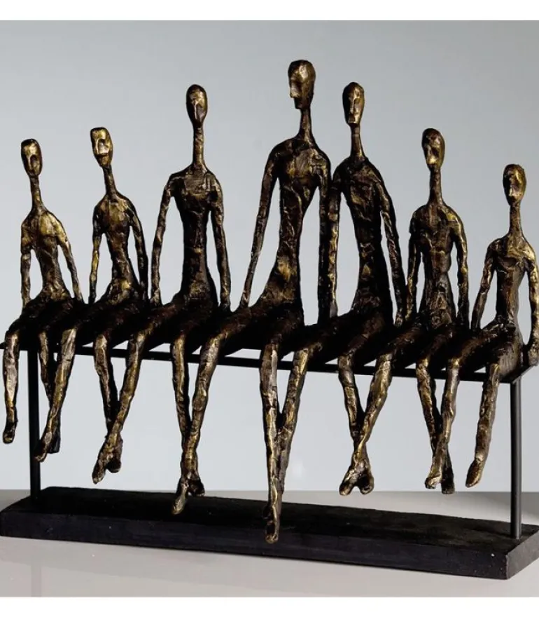 Bænken og bunden er lavet i metal. Figurerne er i polyresin med en malet bronze-finish.