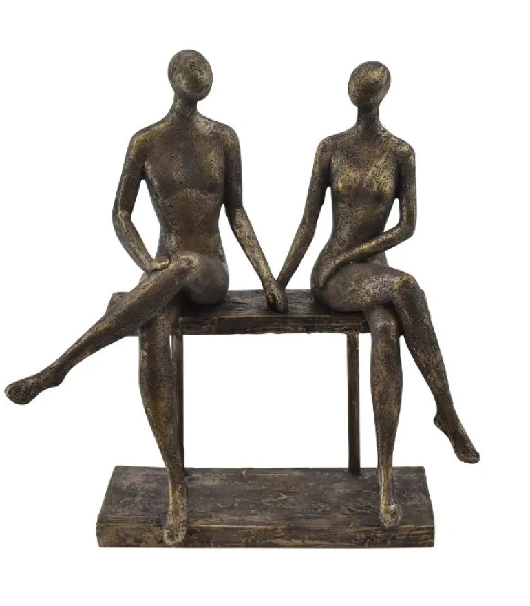 En flot skulptur med et ægtepar på en bænk eller et kærestepar på en bænk.