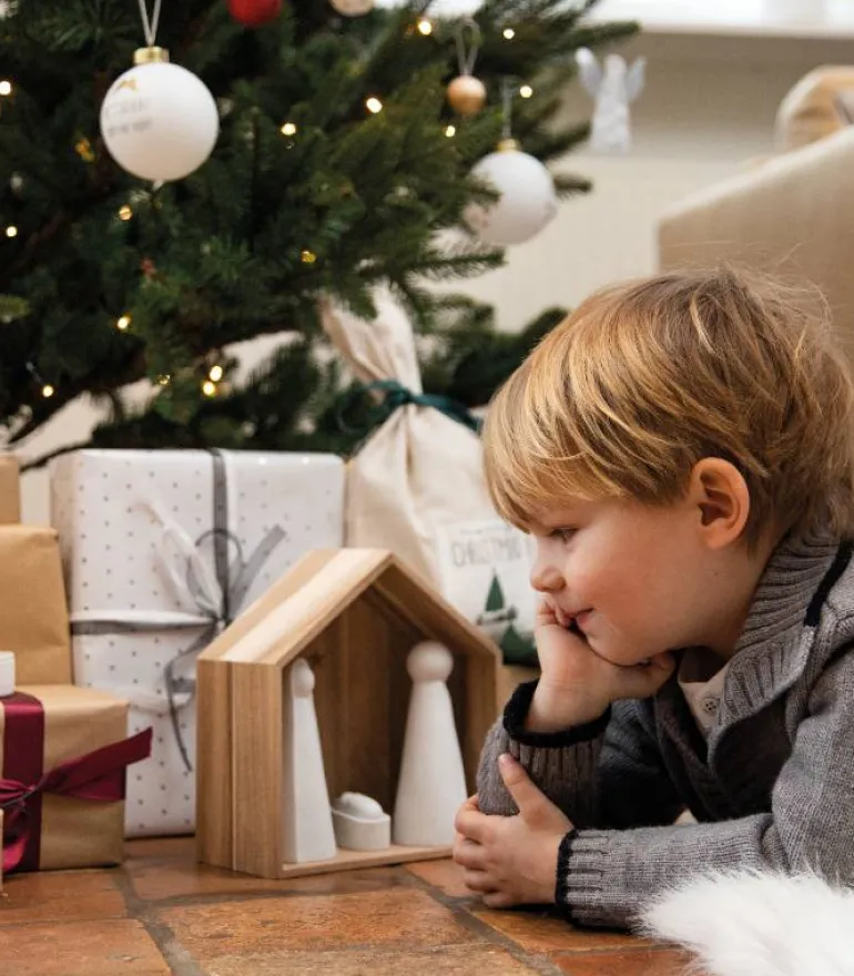 Jesus i krybben, Maria og Josef er alle håndlavet.