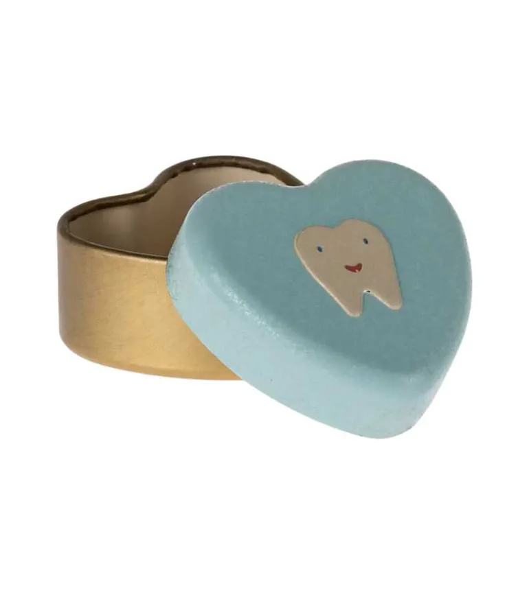 Dette lille fine metalhjerte er det perfekte sted at opbevare små mælketænder, og derved gemme barndoms minderne.