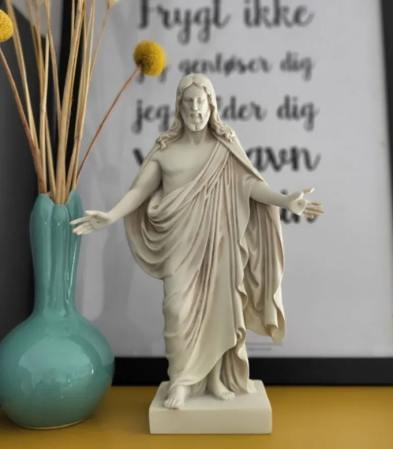 Historien bag Thorvaldsens Kristusfigur er ret fantastisk, og jeg hørte den første gang, da jeg gik på efterskole. Og den rørte mig dybt, og det gør den stadig den dag i dag, når jeg kigger på min egen lille kopi af den imponerende Kristus figur, der i dag står i Københavns Domkirke: Vor Frue Kirke.