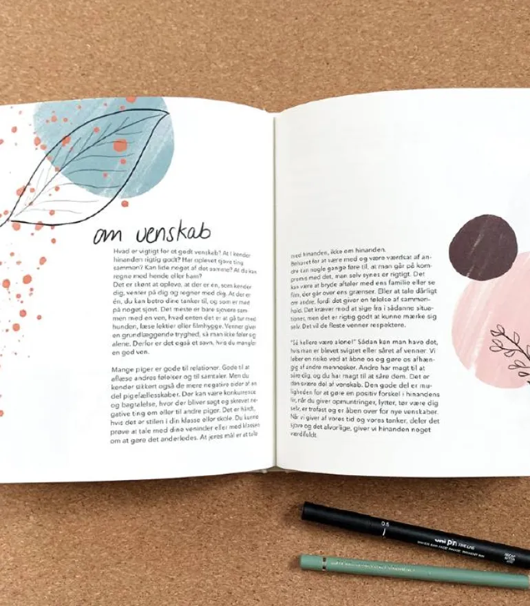 Bogen er smukt illustreret og med god plads til håndskrevne kommentarer, billeder og pigens egne noter.