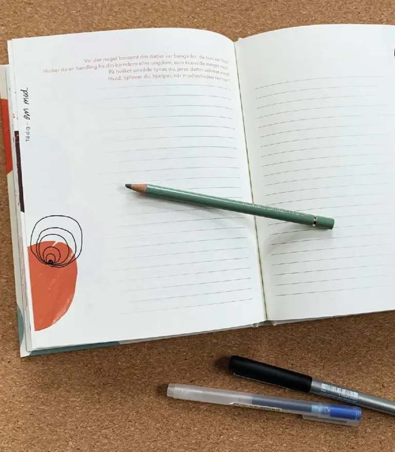 ikke færdigskrevet. Der mangler de ord, som opmuntrer og bygger bro til lige præcis hende. Her er altså muligheden for at tage betydningsfulde ord i munden og fastholde dem på papir.